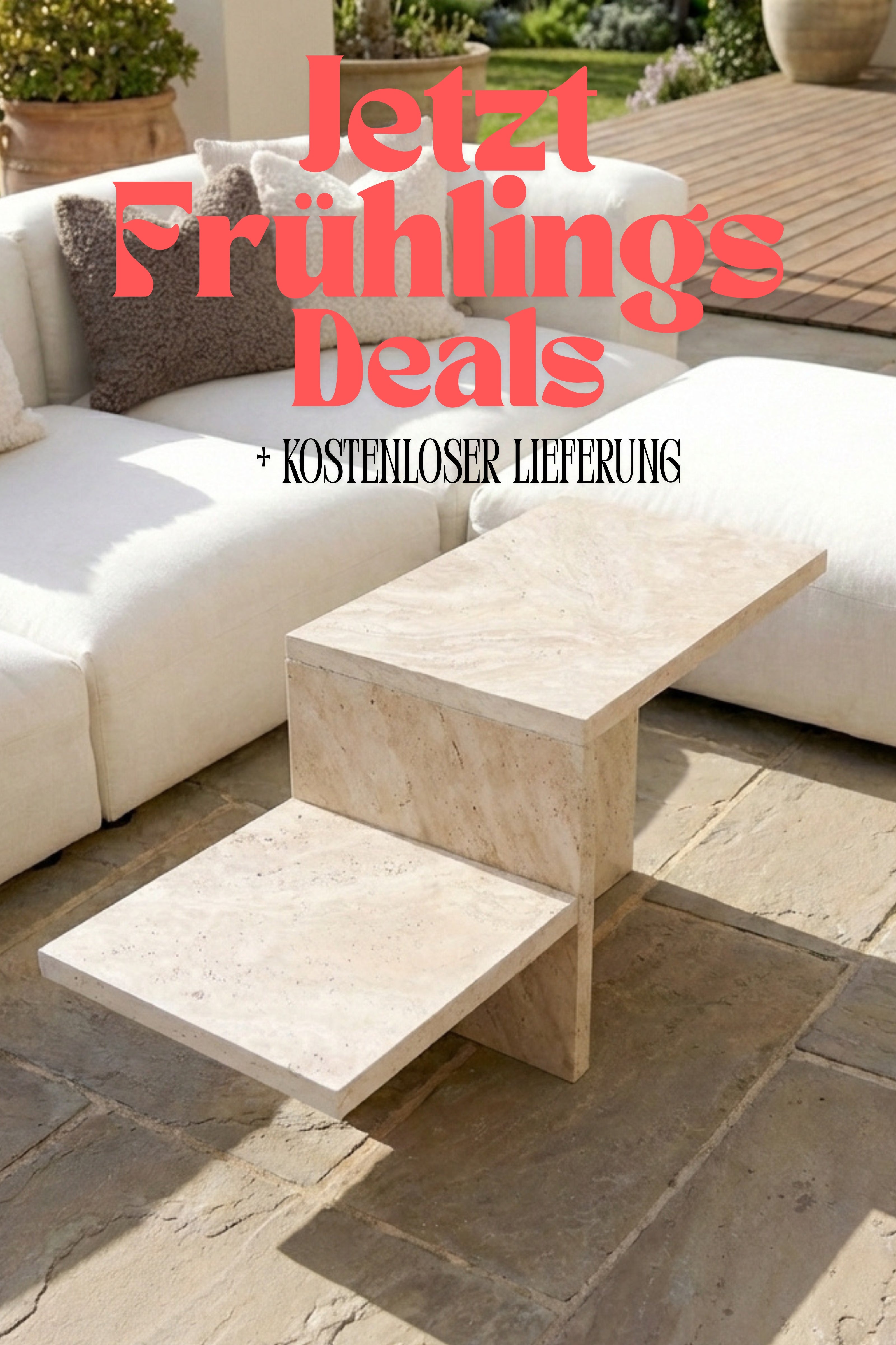 Ob als Statement im Wohnraum oder als stilvolles Highlight im Büro: Unsere Travertin-Tische bringen natürliche Eleganz in jedes Ambiente.