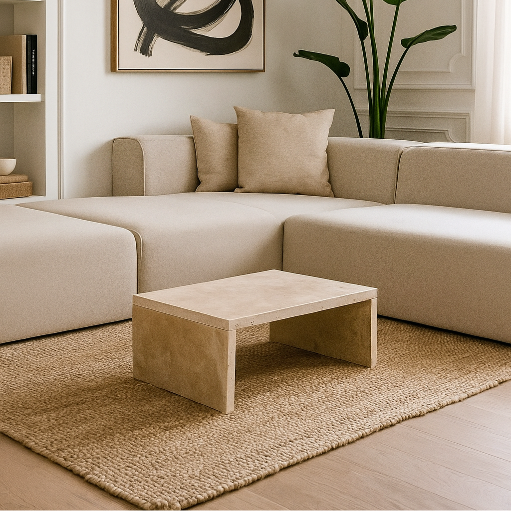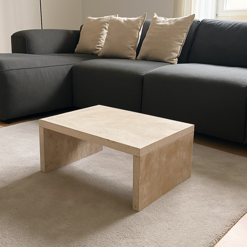 Gefertigt aus 100 % italienischem Travertinstein und in traditioneller Handarbeit vollendet, ist jeder Tisch ein Unikat der Natur – mit einzigartiger Maserung, Textur und Farbgebung.